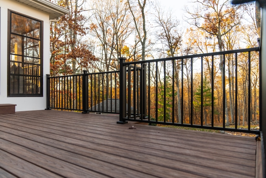 We tore down the old structure and rebuilt it with durable composite decking. After consulting with the Chatburns, we chose two types of VekaDeck boards: standard boards for the outdoor deck and tongue-and-groove boards for the enclosed room, which help block wind and insects from below.